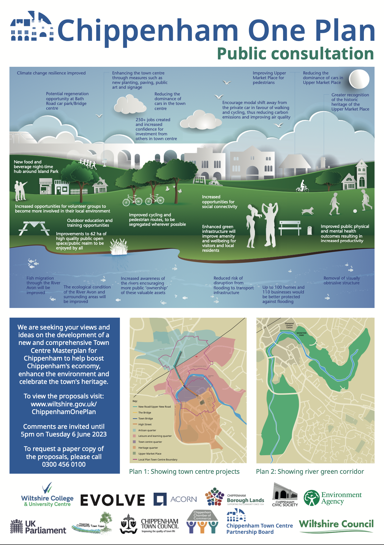 The Chippenham One Plan brings together existing plans and proposals into a single plan, focused on boosting the town’s economy, enhancing the environment, and celebrating its heritage.