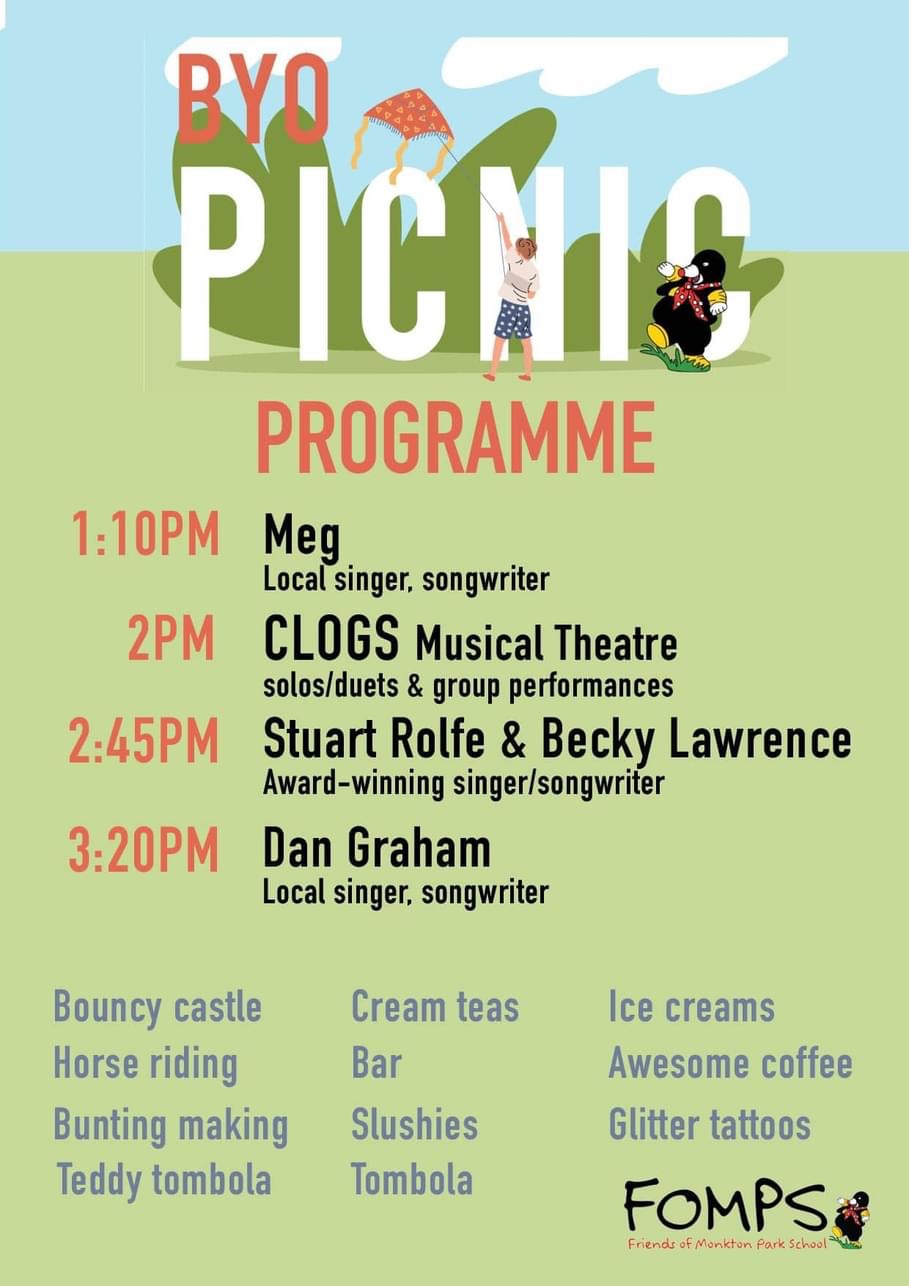 Following our fantastic scarecrow trail, FOMPS are now hosting a BYO Picnic on Sunday 2 July at Monkton Park school field.
