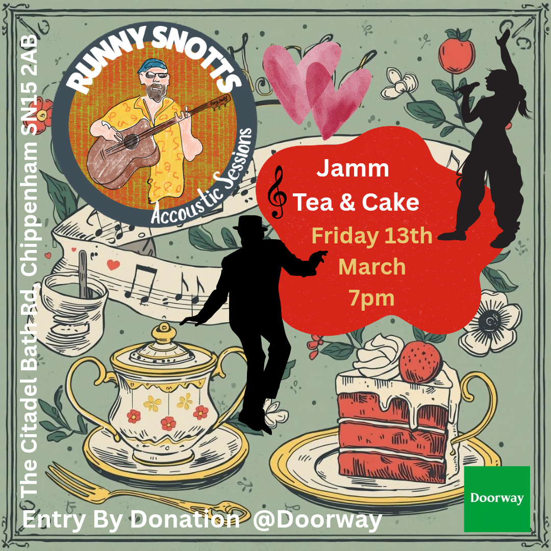 Live music at Doorway Chippenham with Tea and Cake, hosted by @RunnySnotts
