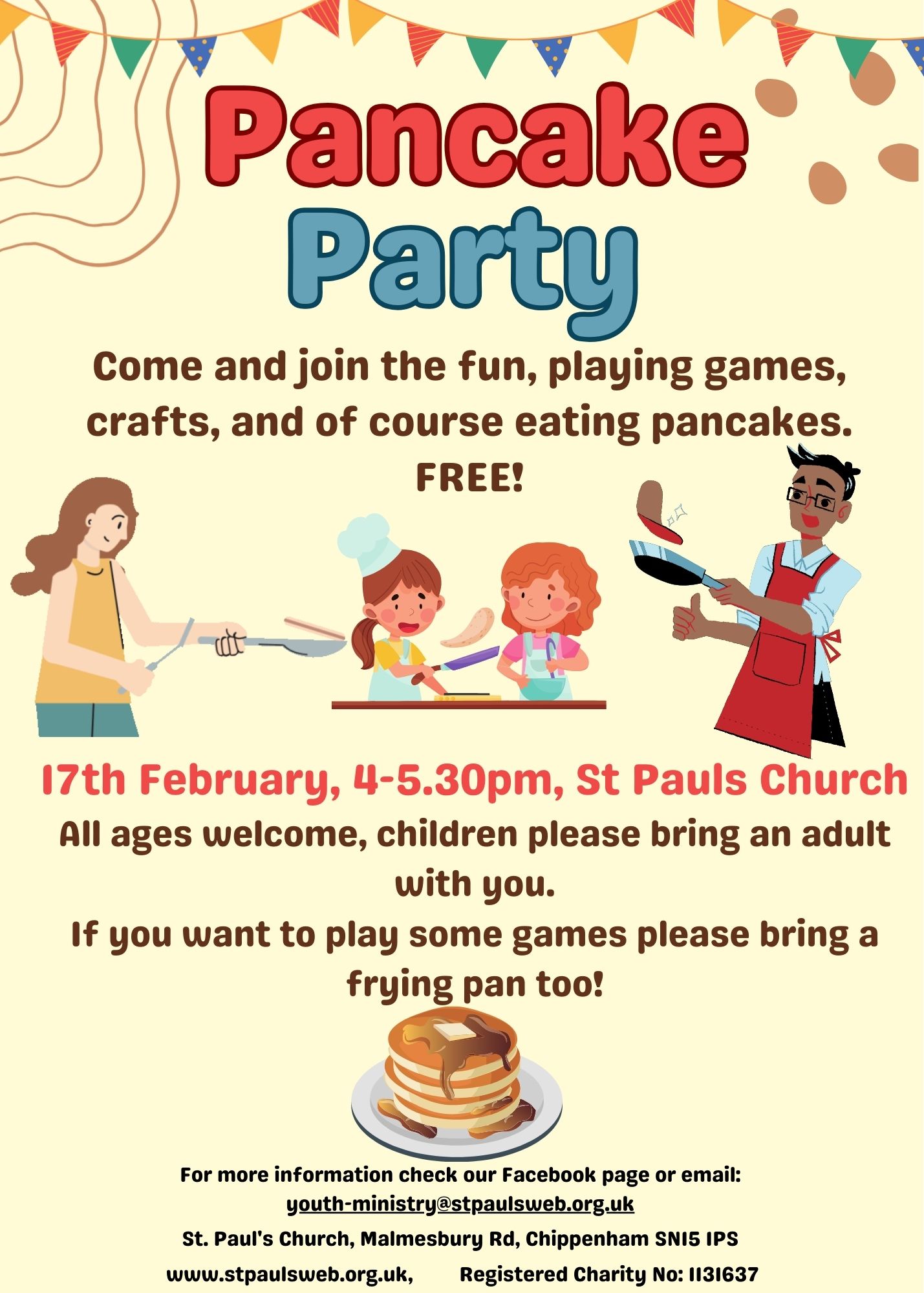 Come along to St Pauls Church Chippenham on 17th February for an afternoon of games, crafting, and – of course – pancakes!