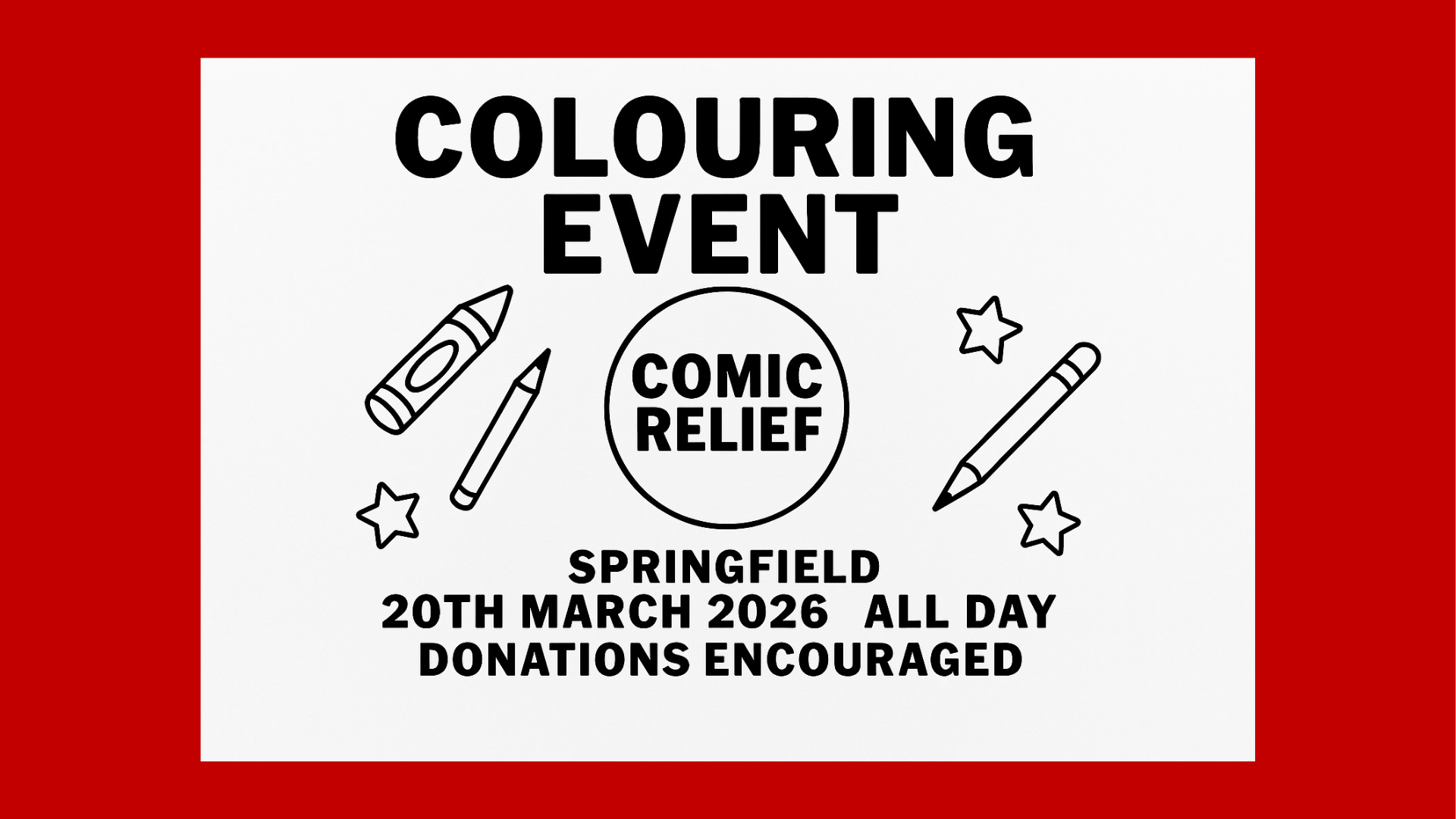 We’re excited to announce that our campus will be hosting a special fundraising event in support of Comic Relief and Red Nose Day! This children-focused, self-guided, relaxed colouring event that will run throughout the day.