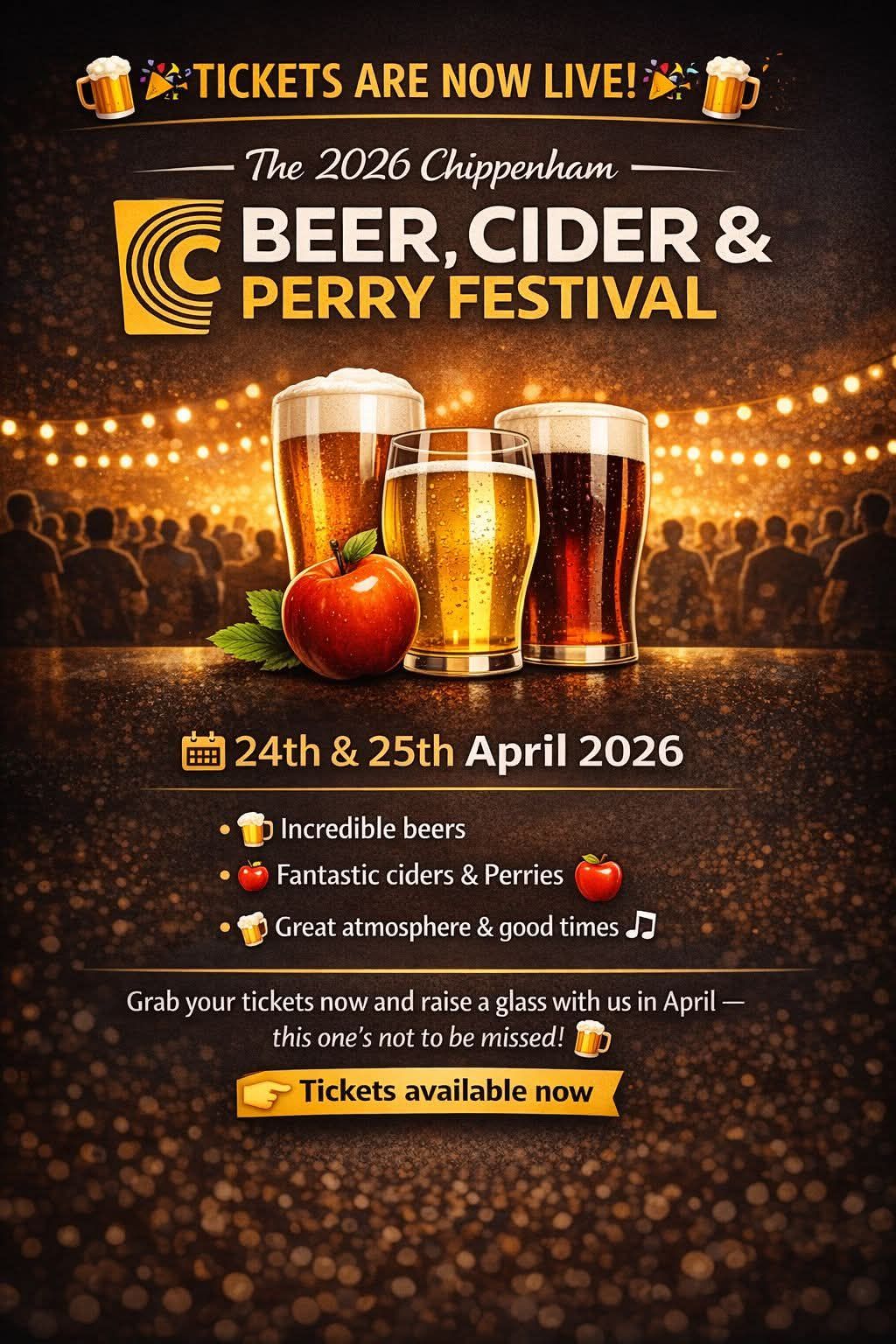 Tickets are now available to purchase for the 2026 Chippenham Beer, Cider and Perry Festival, our 33rd festival, all housed in Chippenham Olympiad. Fresh food will be cooked on site […]