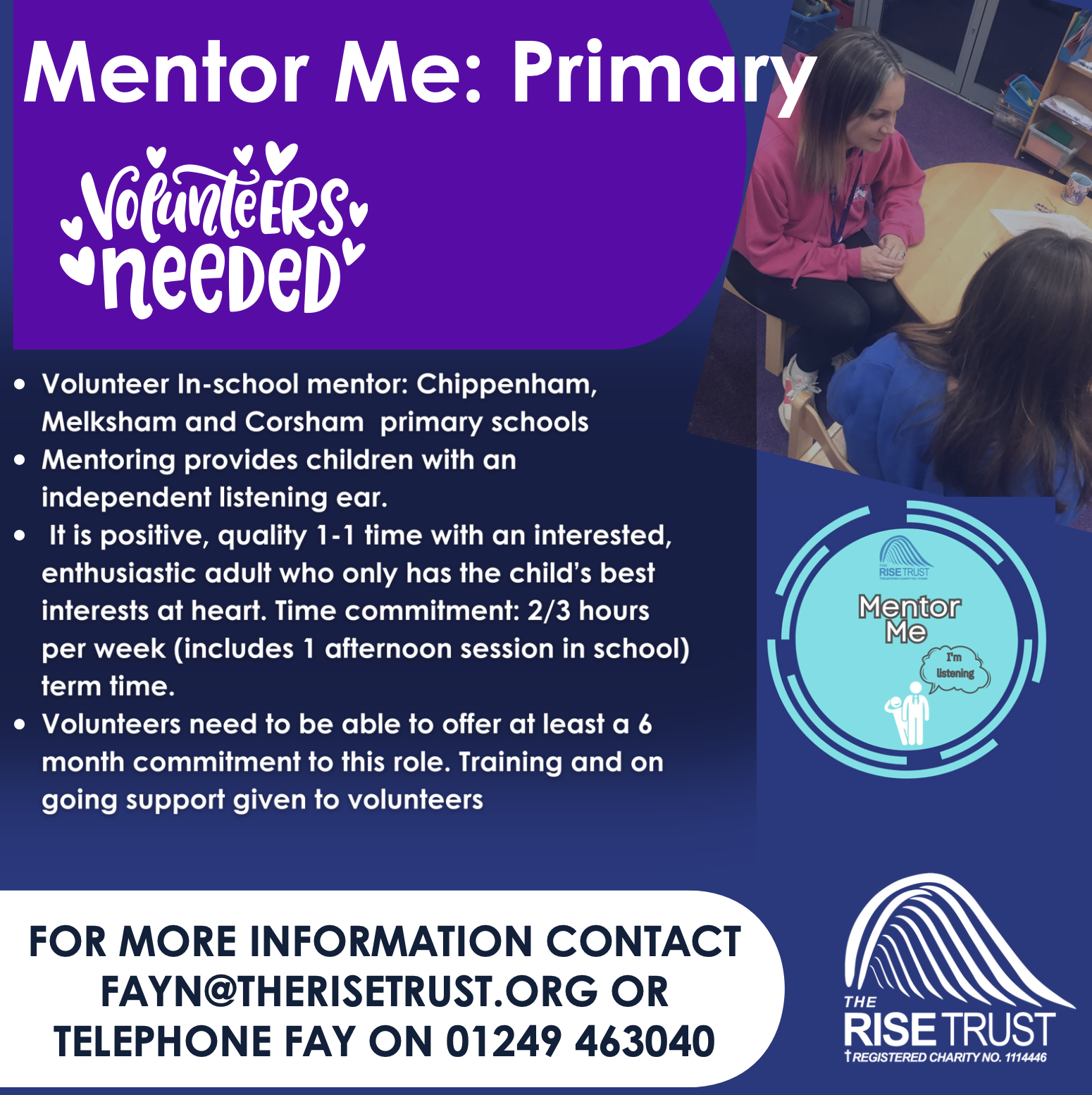 We are currently looking for mentors to volunteer in Chippenham, Corsham and Melksham primary schools.