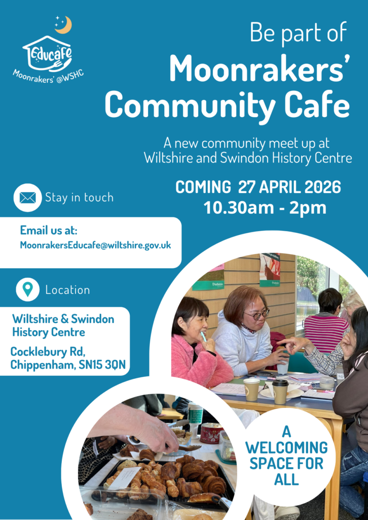Find out more about Moonraker’s Educafe on the Wiltshire and Swindon History Centre’s website here: https://wshc.org.uk/exhibitions-and-projects/moonrakers-educafe-at-wshc/