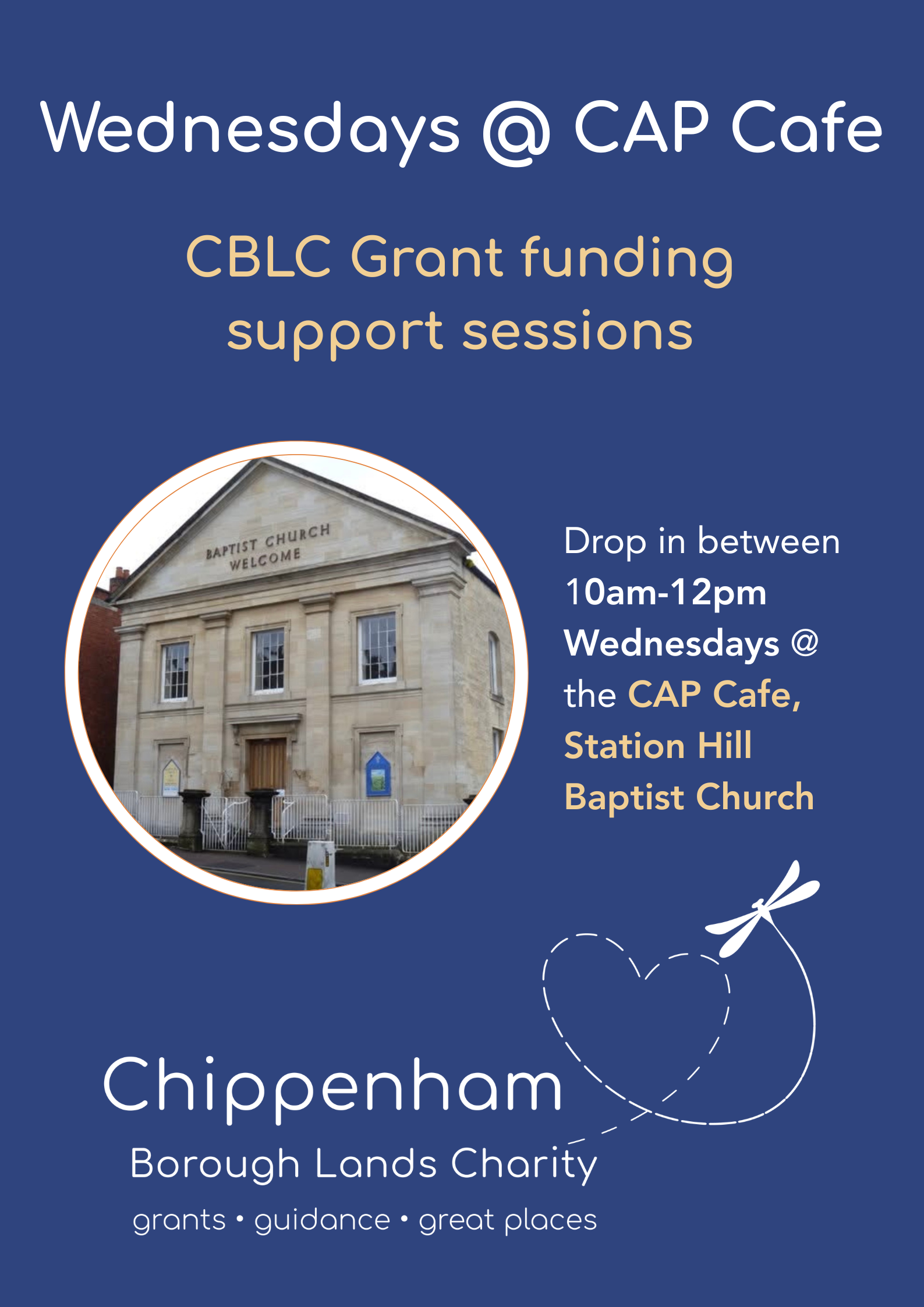 Chippenham Community Hub 1 Gladstone Parade, Timber Street, ChippenhamGet personalised guidance and help with making a grant application to Chippenham Borough Lands Charity. Drop in to see one of our friendly Grant Managers between 10am-2pm on Fridays at the Chippenham Community Hub, 1 Gladstone Parade, Timber Street, Chippenham, SN15 3BS. You might be a Chippenham resident seeking funding support for things like food […]