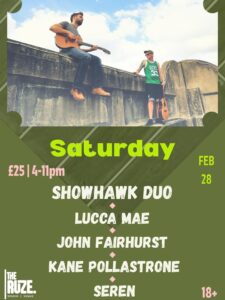 ShowHawk Duo takes centre stage, supported by an impressive lineup including Lucca Mae, John Fairhurst, Kane Pollastrone, and Seren. Another 18+ night not to be missed. Tickets are £25