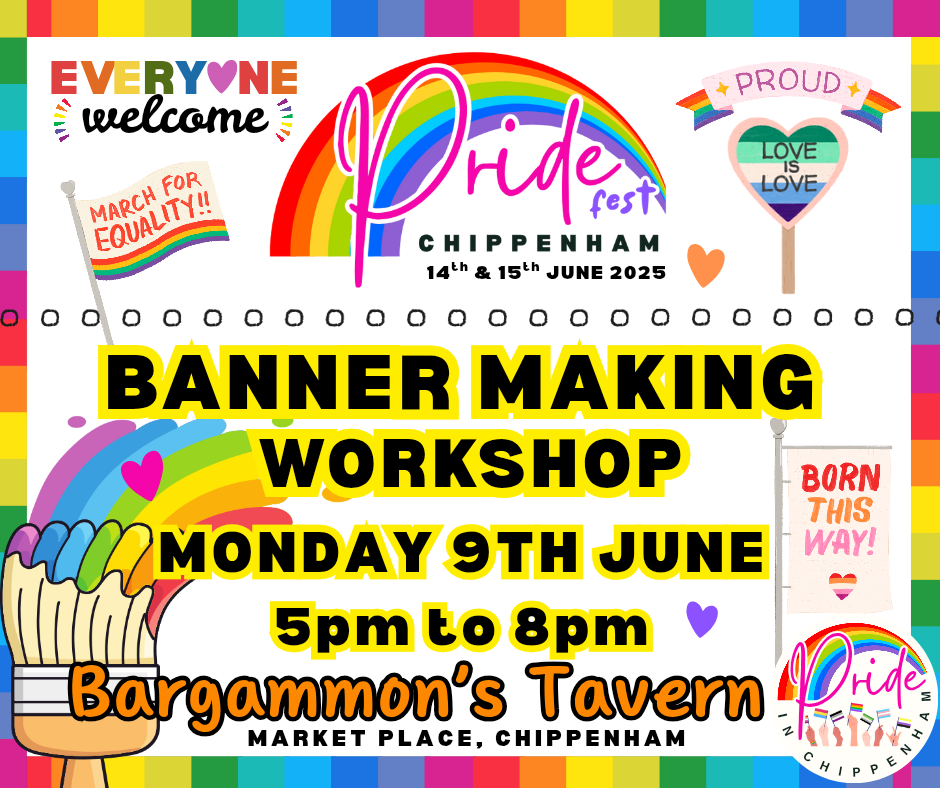 Pride In Chippenham are hosting a Banner Making workshop on Monday 9th June 5pm to 8pm upstairs at Bargammon's Tavern - Chippenham's Board Gaming Café in Market Place 😊🖌 All materials are provided for FREE. Drinks and snacks will be available to purchase in the Tavern downstairs. Whether you're a member of the LGBTQIA+ community […]