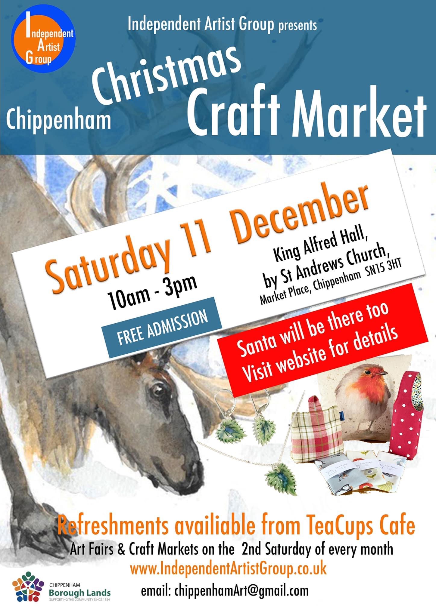 Chippenham Christmas Craft Market & a Santa’s Grotto will be at the King Alfred Hall on Saturday 11th from 11am-3pm – find out more about here.