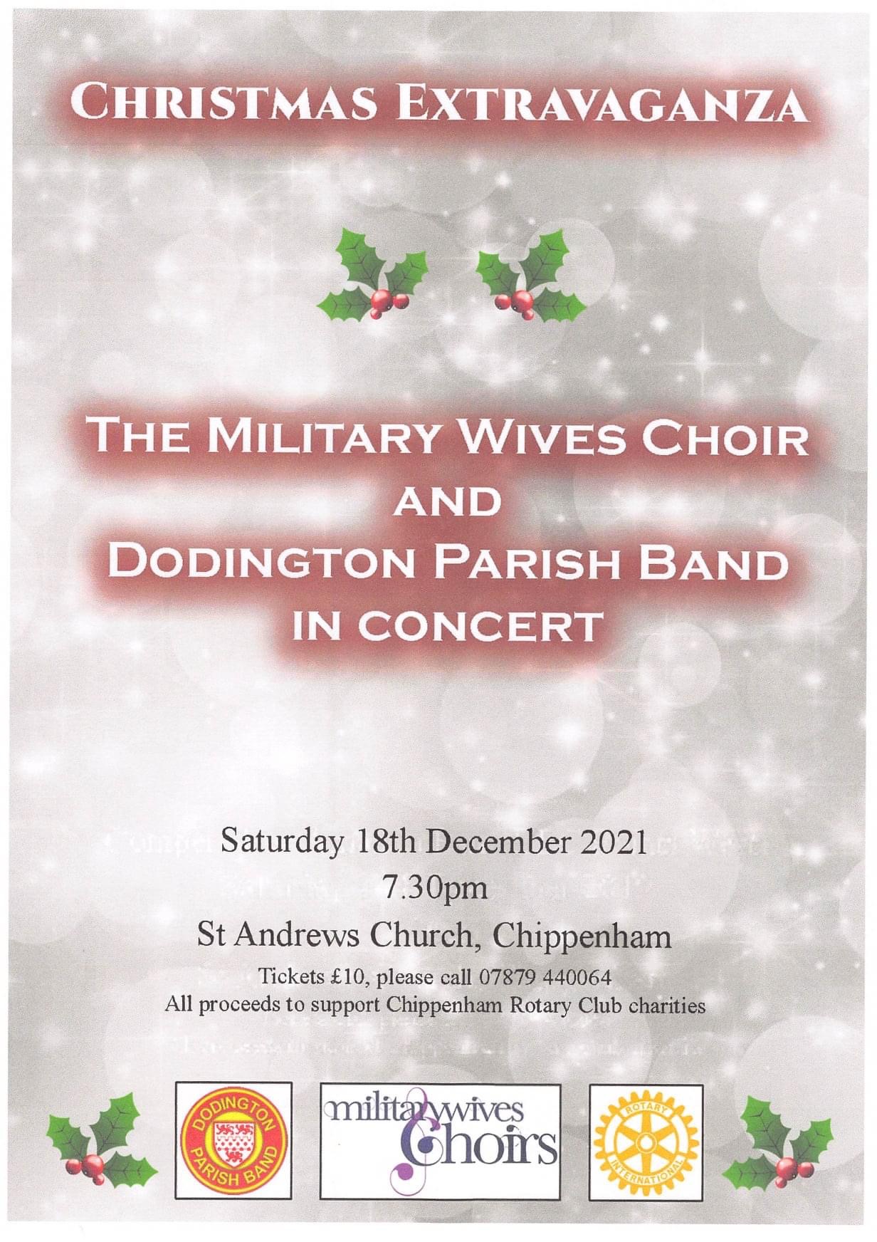 The Rotary Club of Chippenham are hosting The Military Wives Choir and Dodington Parish Band in concert at 7.30pm on Saturday 18th December at St Andrews Church Chippenham.