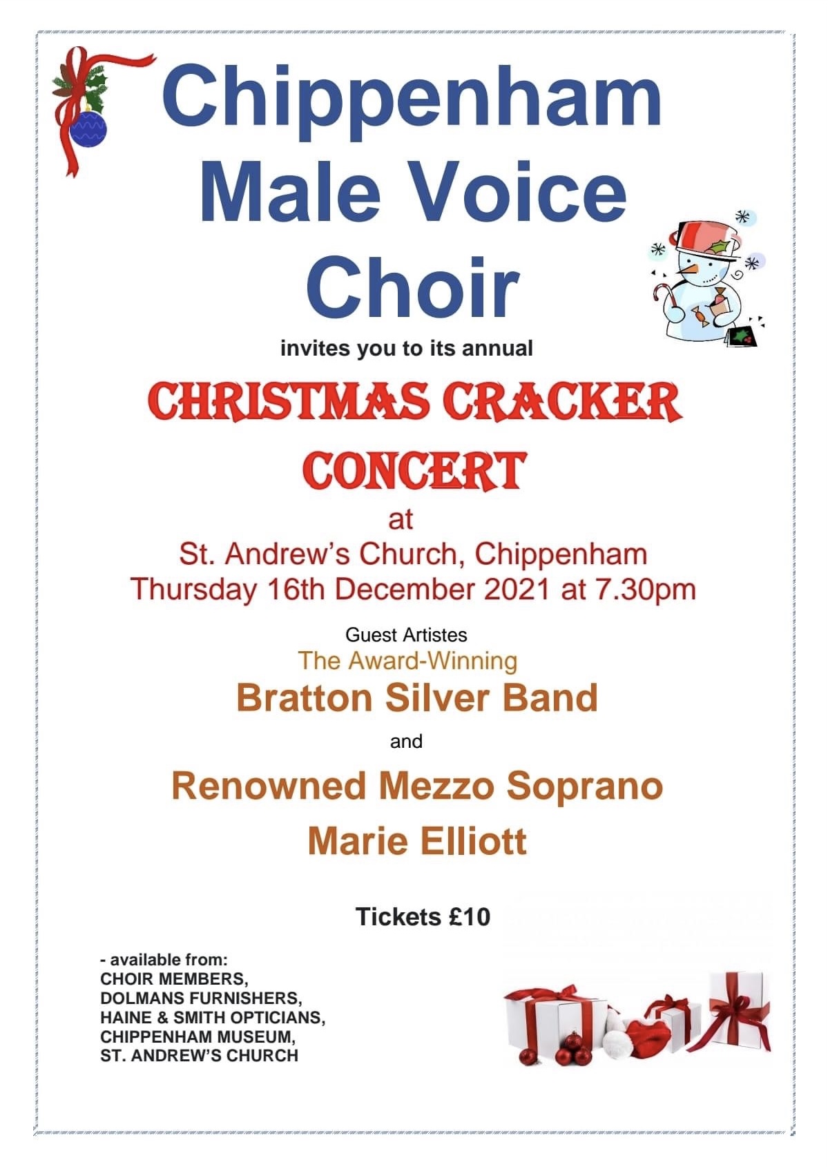 Chippenham Male Voice Choir invite you to its annual Christmas Cracker Concert at St. Andrews Church, Chippenham at 7.30pm on Thursday 16th December. The choir is being supported by The Bratton Silver Band and Mezzo Soprano Marie Elliott with a retiring collection will be for Julia’s House.