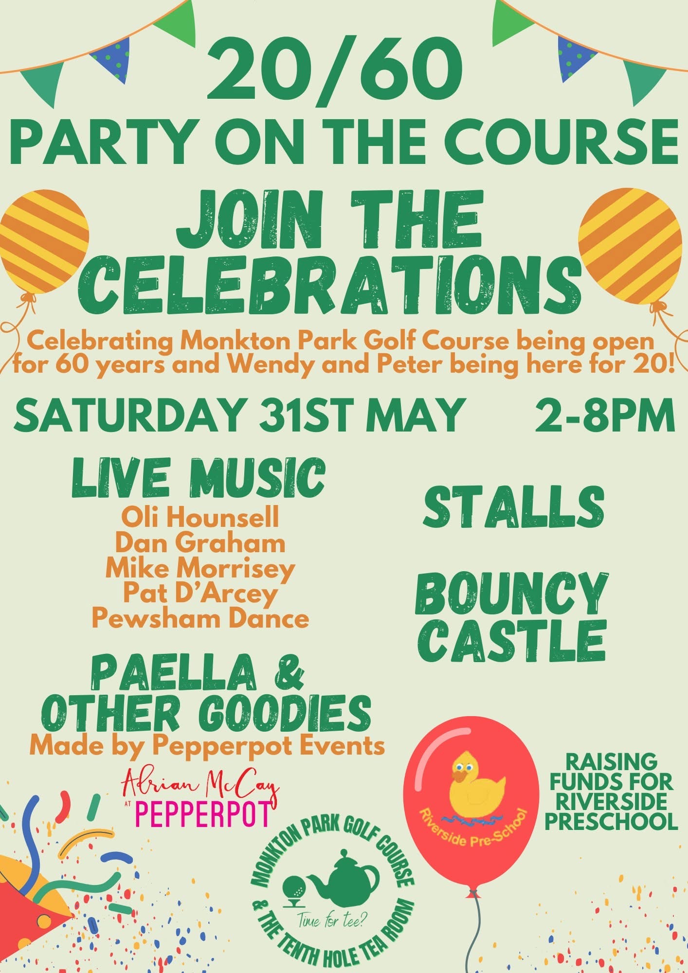 Celebrate 60 years of Monkton Park Golf Course and 20 years of Wendy and Peter running the show with an afternoon of fun, food and live music.